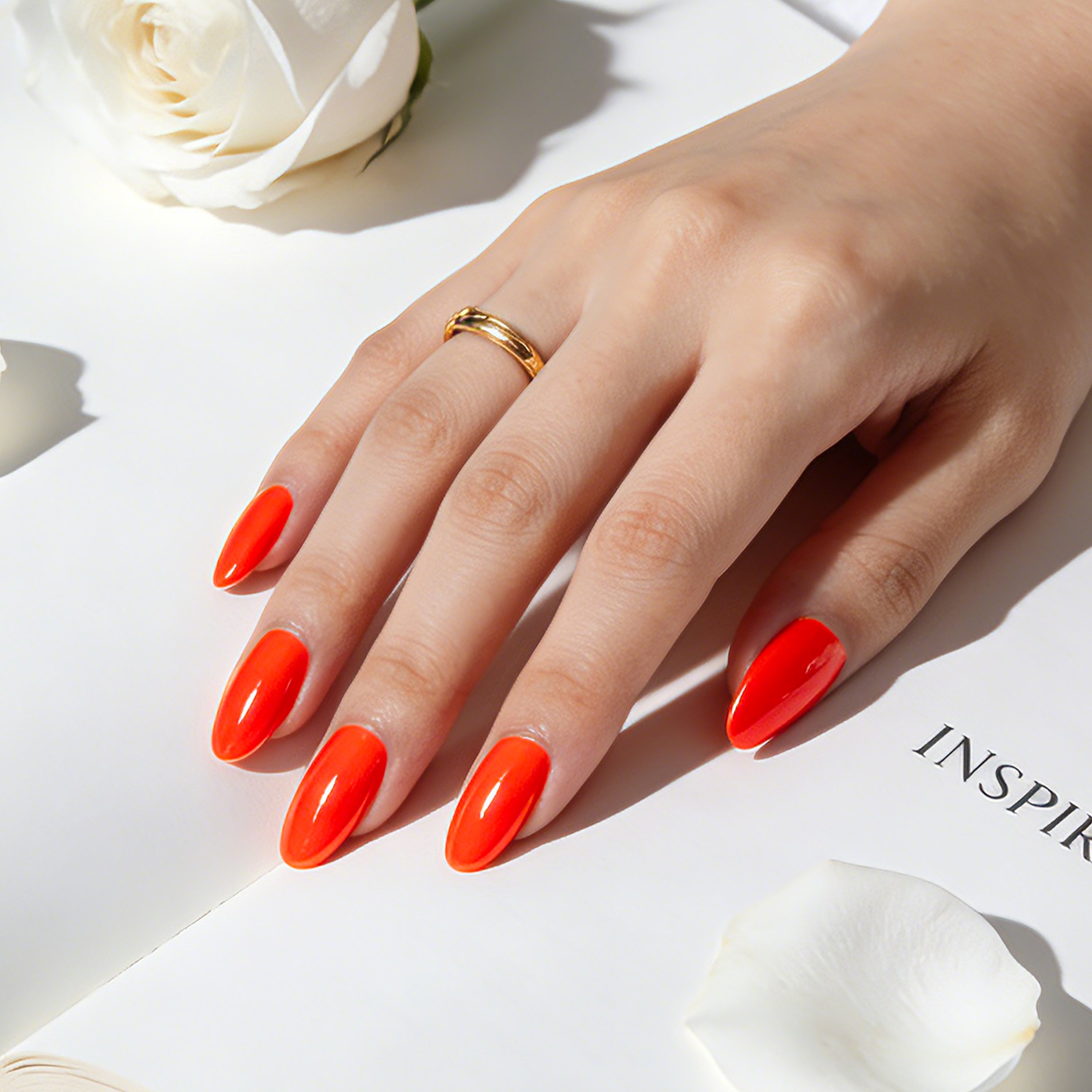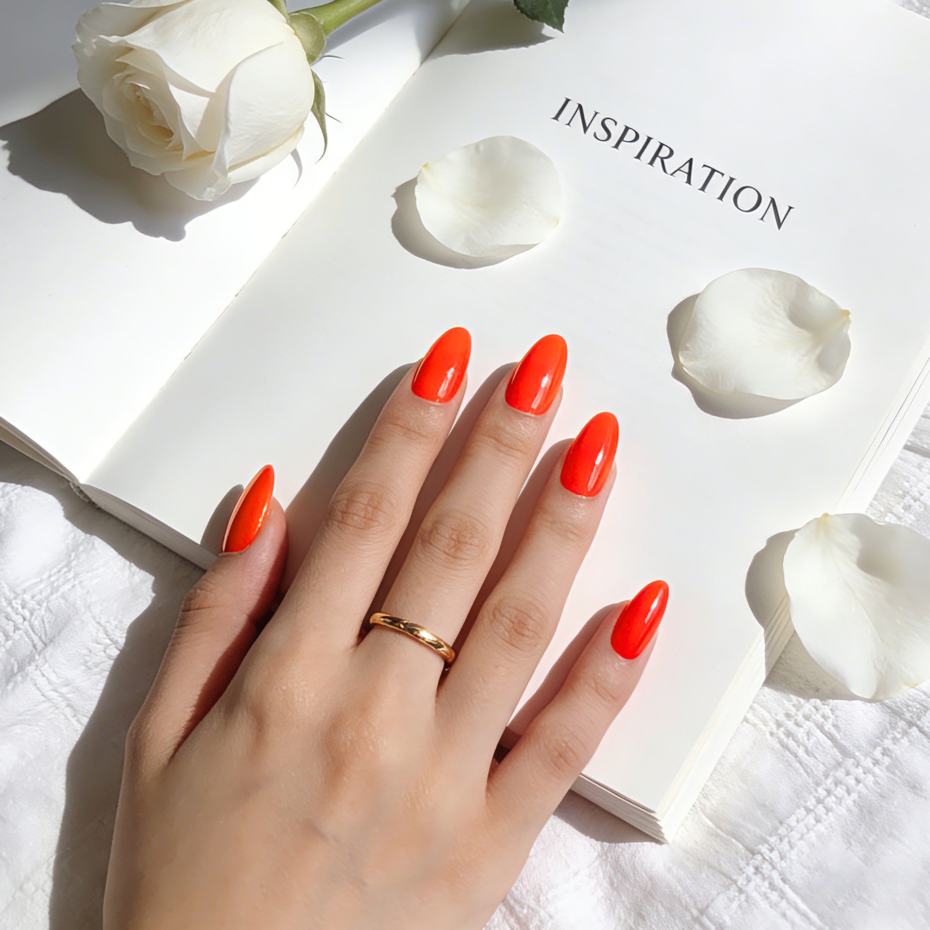 Make a statement with this vibrant and intense orange gel nail polish.
