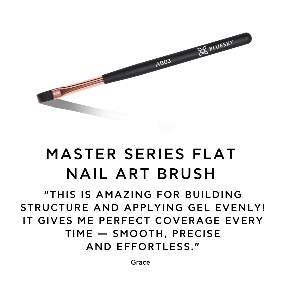 Engineered for nail artists who prioritise control and consistency, the Flat Nail Art Brush is the ultimate tool for structure, building and flawless gel application. Its eco-friendly resin handle with an ergonomic, non-slip grip provides exceptional balance and comfort, while the firm, flexible bristles ensure smooth, even coverage in every stroke.