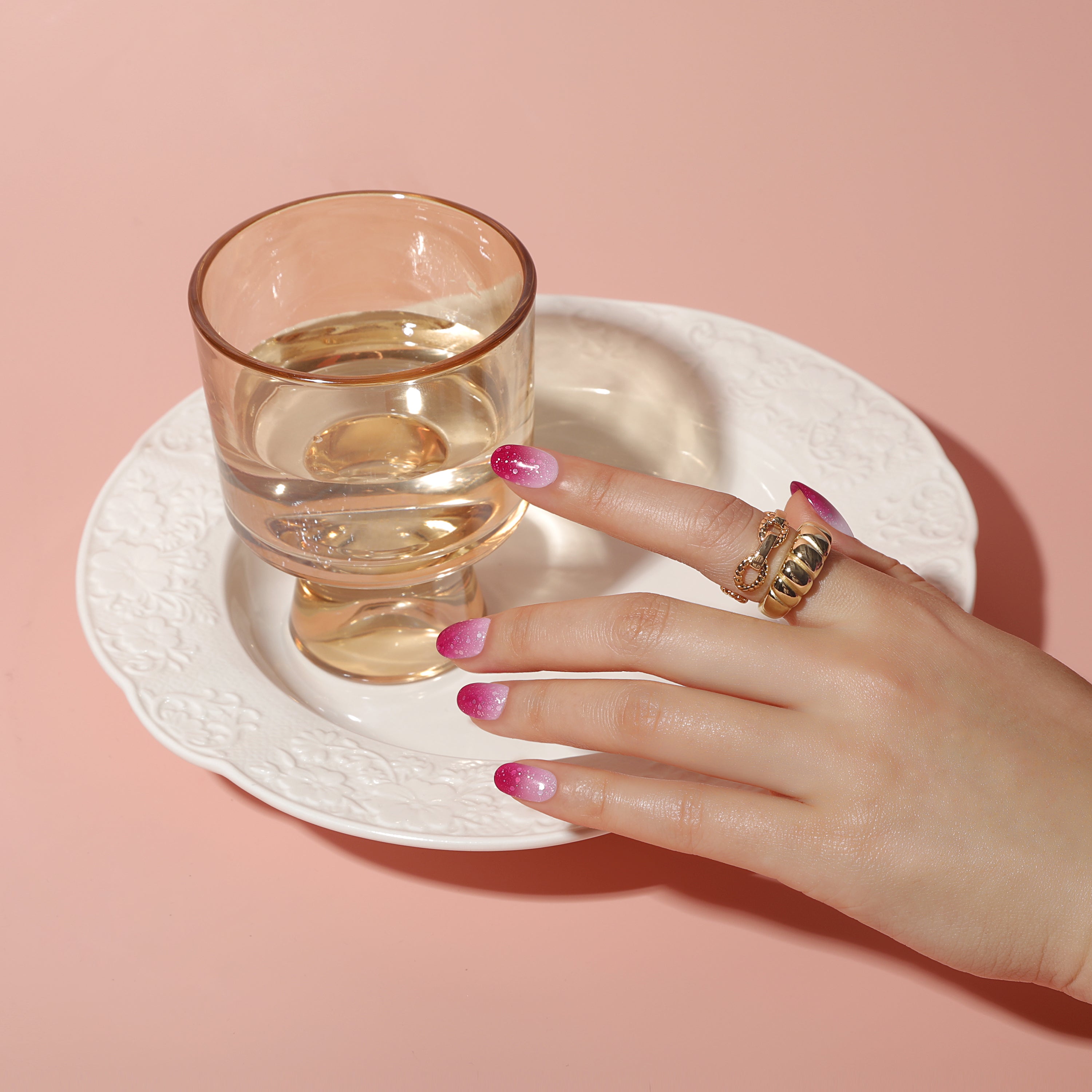 Dip your nails in warm water for a few seconds and your nails will turn one colour. Place them in cold water for your gel manicure to transform to the other colour.