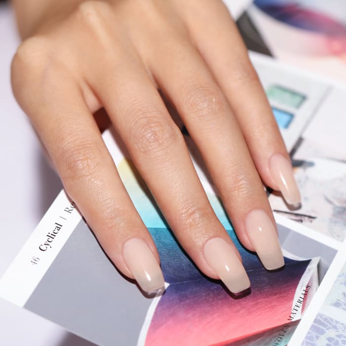 - Prepare your nails by filing into your desired shape. Buff the nail gently and cleanse with a Bluesky Cleanser Wipe.