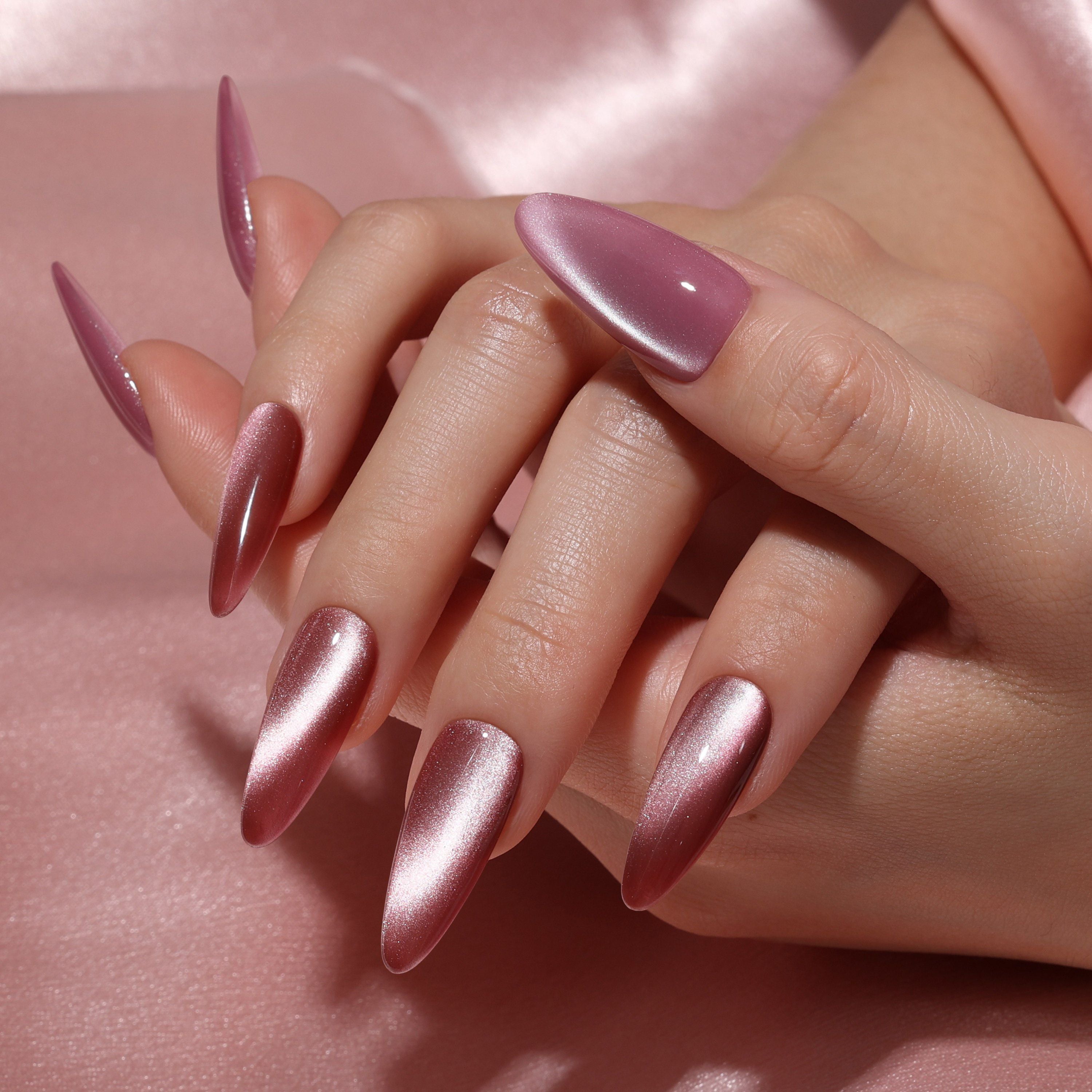 Embrace the delicate allure of Rosebud Charm and transform your nails into a shimmering masterpiece. This enchanting pink Cat Eye Gel Polish unveils a captivating magnetic shimmer, producing a dynamic, light-reflecting effect that adds a touch of mystery and elegance to your manicure.